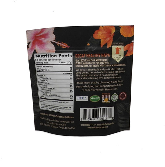 100% Kona Healthy Hapa DECAF - Medium dark roast - Whole bean coffee 12 oz.